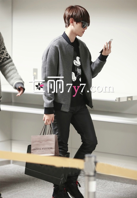 EXO成员边伯贤街拍图片 机场潮搭萌帅阳光休闲风