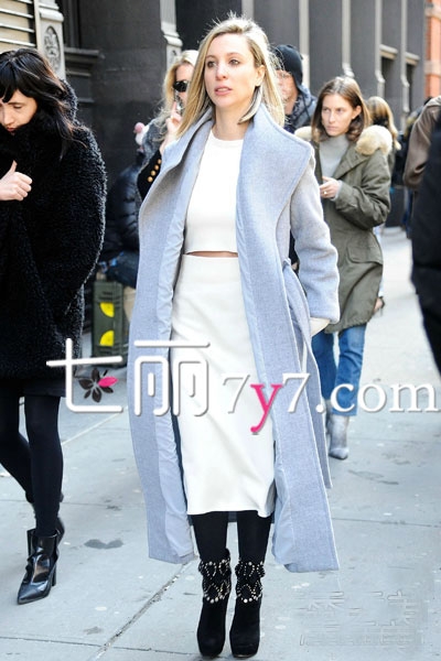 在忽冷忽热的早春时节,呢子大衣就是最百搭的服饰,浅蓝色系的长款大衣,极具欧美大牌范,内搭白色露脐套裙,十分清新迷人,脚踩一双短靴,靴子上的水钻闪耀出迷人的光芒,轻松穿出欧美大牌范。