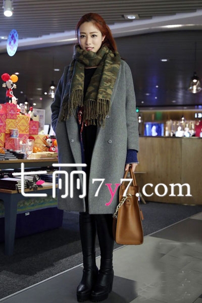 国内长腿美女冬季街拍 格子大衣诠释韩系小清新