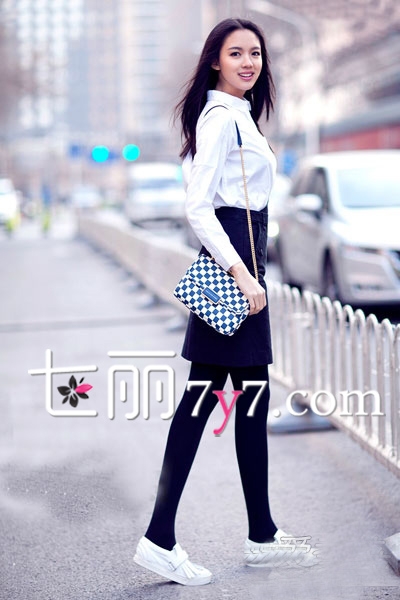 经典百搭的白色衬衣,是春季穿衣搭配的基础款,搭配深色的短裤,加上黑色打底裤,轻松穿出或清纯或知性的魅力,脚踩一双白色的运动休闲鞋,女神将知性与休闲完美的融合在一起。