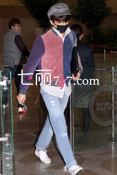 张佑荣一身萌萌的减龄装扮十分抢镜。拼色棒球服外套,采用红、蓝、紫、灰拼接在一起,完全没有了运动范,反而显得很可爱活力。搭配白色印花衬衫和补丁牛仔裤,潮范儿尽显,配上白色运动鞋,戴上八角帽,很是阳光帅气。