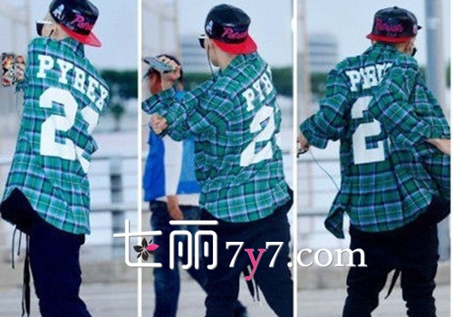 格子衣是很多潮男潮女们的最爱,权志龙这款绿色格子外套,背部设计大大字母作为装饰,不单调反而更加符合潮男们的喜好,搭配黑色嘻哈裤,宽松舒适又时尚,配搭个性嘻哈帽子,让整体着装更具有嘻哈风格的潮流范。
