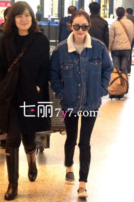 时尚点评:在杨幂最新的街拍中,身处上海虹桥机场的大幂幂,穿着的是经典翻毛领牛仔外套,显得十分帅气时尚,同时呈现出浓郁的BF风格,下穿黑色的撕裂牛仔裤,脚踩一双铆钉的休闲鞋,浓重的街头范尽显,但是这身服饰搭配她的马尾发型,却显得十分清爽甜美,整体呈现出简单复古养眼的感觉,犹如少女般迷人!