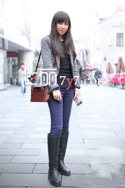 国内长腿美女冬季街拍 格子大衣诠释韩系小清新