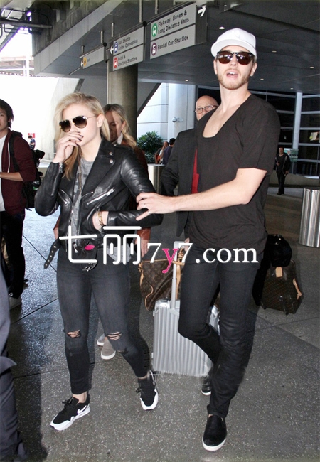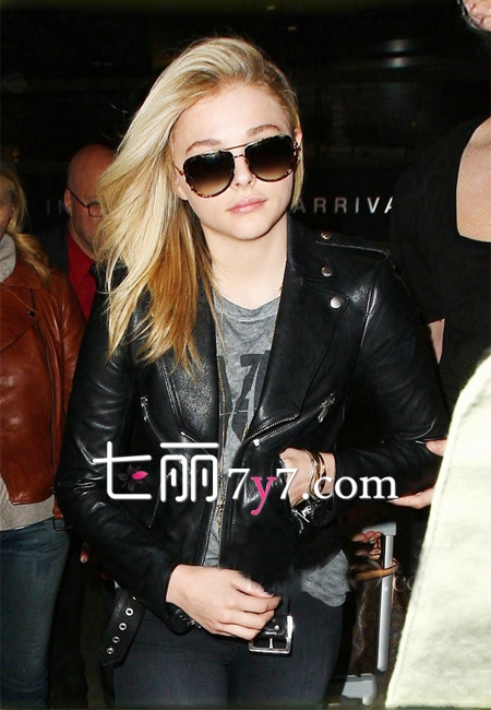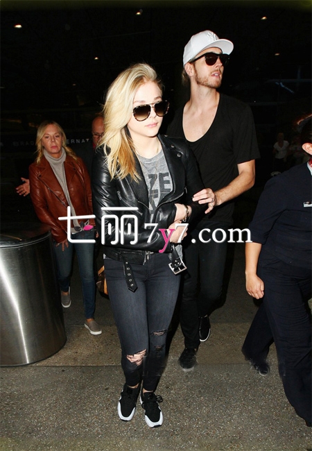 当地时间3月12日,“超杀女”科洛·莫瑞兹(Chloe Moretz)与哥哥现身洛杉矶机场,帅哥哥全程为其保驾护航。当日科洛·莫瑞兹身着时尚全黑look硬朗帅气,黑色短款机车皮衣外套,个性的拉链设计,增添潮酷感,内搭灰色印花打底衫,下穿紧身破膝牛仔裤和黑白拼色运动鞋,休闲潮范儿十足。超大墨镜凹造型,更具时尚感。