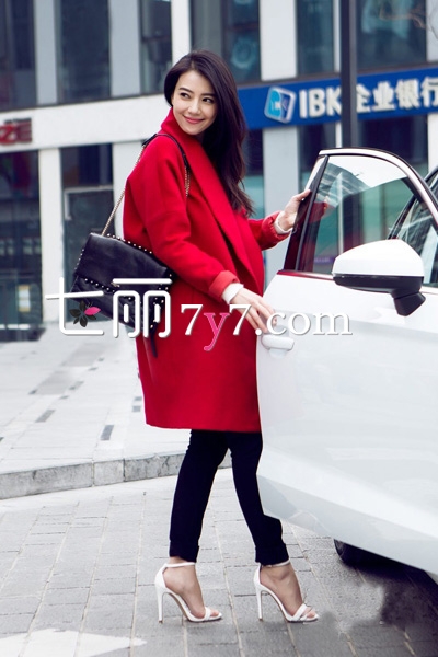 鲜亮的红色廓形大衣,宽松的版型时髦大气,无论是色彩还是款式,都有十分惊艳的效果,袖子挽起来穿有种随意的风情,搭配上白色毛衣和黑色长裤,脚踩白色高跟鞋,时尚而干练,秀发撩到一边,显得更加风情万种。