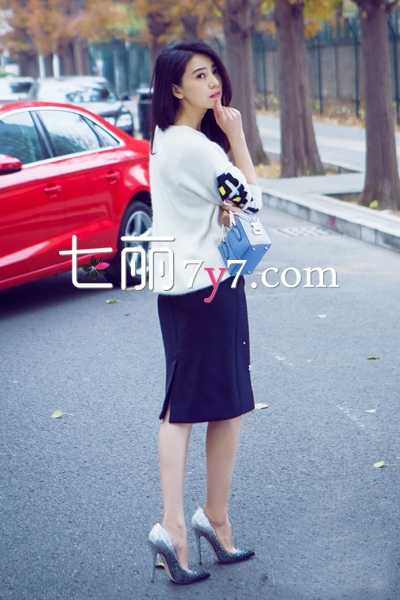 简约宽松白色套头毛衣,无形中释放出清新的气息,衣袖处的黑色编织花纹,增添造型亮点,时尚个性,让毛衣不那么单调,搭配藏蓝色半身铅笔裙,裙上的装饰也很精致,甜美优雅的装扮正适合春季穿。