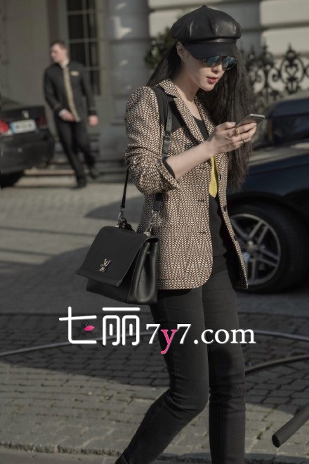 搭配看点:范爷身穿咖啡色的修身小西装优雅而干练,凸显轻盈苗条的身姿,搭配黑色T恤和黑色小脚裤,整体看起来很显瘦,LV包包与墨镜的点缀,酷感十足的范爷尽显大牌范。
