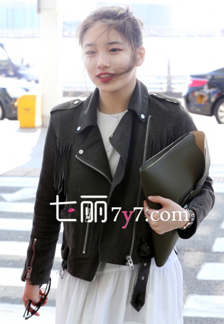 missA成员裴秀智亮相韩国仁川机场。在春日暖阳下,秀智换上轻便服饰出街,身着一袭白裙搭配机车外套,清新有范儿仙美十足。下面就一起来看看韩国missA裴秀智2015机场街拍把。