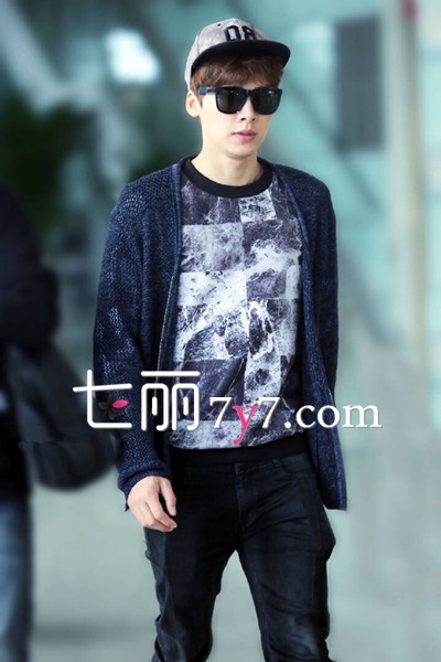 搭配看点:李易峰这身装扮虽然黑色调为主,但是给人的感觉却是十分的具有时尚感,针织开衫外套与印花T恤搭配,尽显潮男风尚,印花T恤张扬这英伦风格,配上黑色裤子,百搭好看,这样的装扮足以迷倒众多mm。