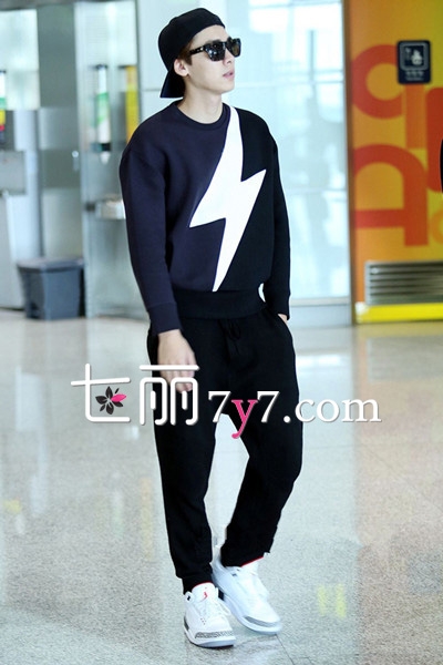 搭配看点:闪电图案卫衣,穿在李易峰上身个性范是难免不了的,配上休闲裤与运动鞋,休闲范渲染全身,加上帽子与墨镜点缀,穿出十足休闲范与潮男魅力。