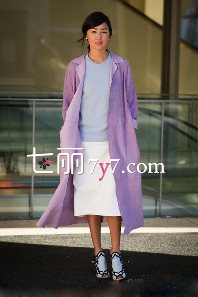 何穗最新街拍,灰色毛衣+墨绿色光泽感半裙,文艺慵懒,少女感十足。马海毛毛衣来自H&M,手提包和粉色毛拖鞋均来自Gucci,半裙来自Tibi 2016