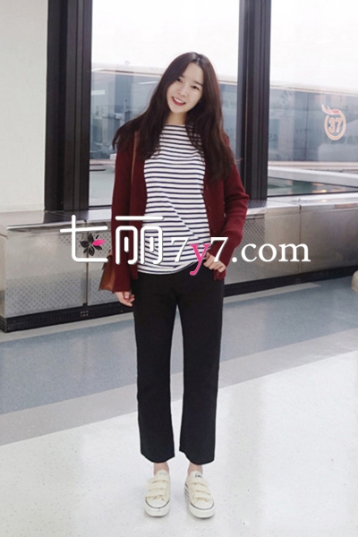 酒红色小针织开衫外套,散发着复古的气息,内搭黑白细条纹T恤,瞬间变得活力十足,简约不失时尚,再配上宽松的黑色九分裤和白色帆布鞋,打造文艺范儿,是不是很好借鉴的一身搭配呢。