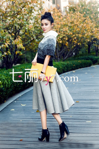 何穗最新街拍,灰色毛衣+墨绿色光泽感半裙,文艺慵懒,少女感十足。马海毛毛衣来自H&M,手提包和粉色毛拖鞋均来自Gucci,半裙来自Tibi 2016