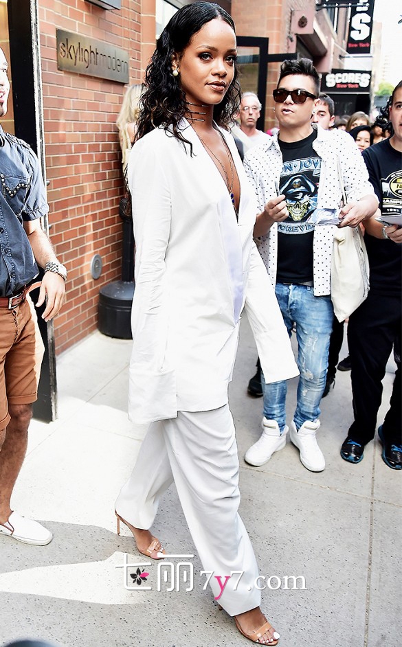 搭配看点:薄荷绿套装十分的清纯动人,搭配一双白色高跟凉鞋更是清爽无比,而一款粉嫩的印花包让rihanna更是显得无比少女,这样的搭配倒是十分cute,乐坛天后也有一颗粉嫩少女心哦。