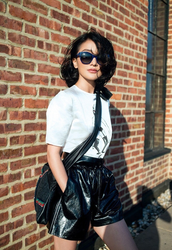 搭配看点:经典黑白配大气又简洁,短裤高腰的设计轻松提高腰线,让周迅更加显高显精致,搭配一款香奈儿新出的个性斜挎包,更添时髦气息。