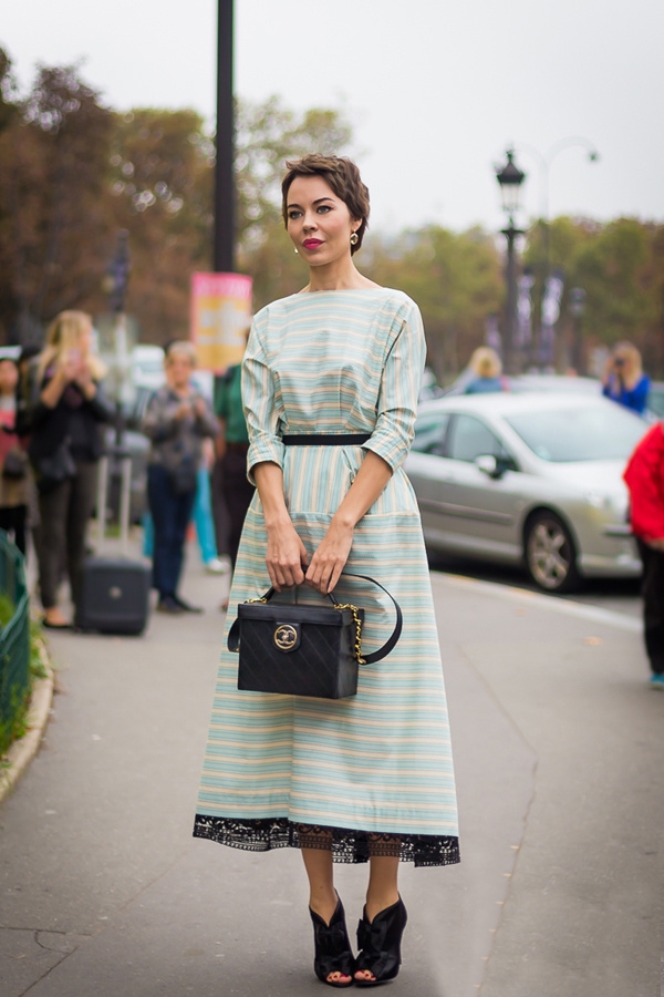想做复古名媛?这条裙子你可不能少 ,清新雅致的配色,细腻的裙边蕾丝。高腰的设计和大大裙摆是复古款式的典型范例,再配一个复古的妆容,分分钟带人回到黄金时代,街上有这么雅致的美人,真是一件赏心悦目的事情。