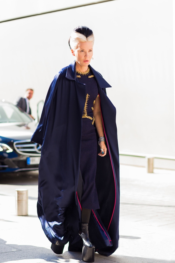 在说到女魔头,时尚街拍中有这么一个人,穿衣风格十足的诠释了女魔头的概念。比起女魔头,这位的穿着应该更加接近女巫。大气得仿佛斗篷一样的风衣,神秘高贵的配色。再加上魔头般的发色,这样胸下一击的装束你能接受么?