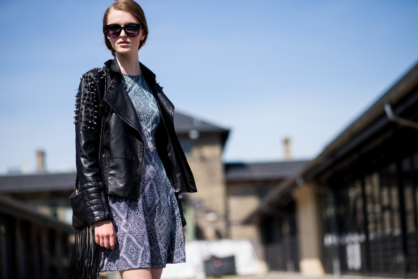 不少人喜欢穿印花长裙,这个秋天如果想要自己美得更加的打眼,尝试着穿上一件设计特殊的皮衣,女人的印花长裙加上这种硬派的外套,浓郁的混搭风向你袭来。