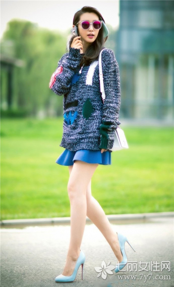 个性的印花毛织在李冰冰身上竟穿出了清纯无邪的味道,蓝色的短裙,在毛织的朴实保护下,看不出丝毫轻浮感,反而让那双男人看了鼻血横流的大白腿,成了超高的吸睛砝码。