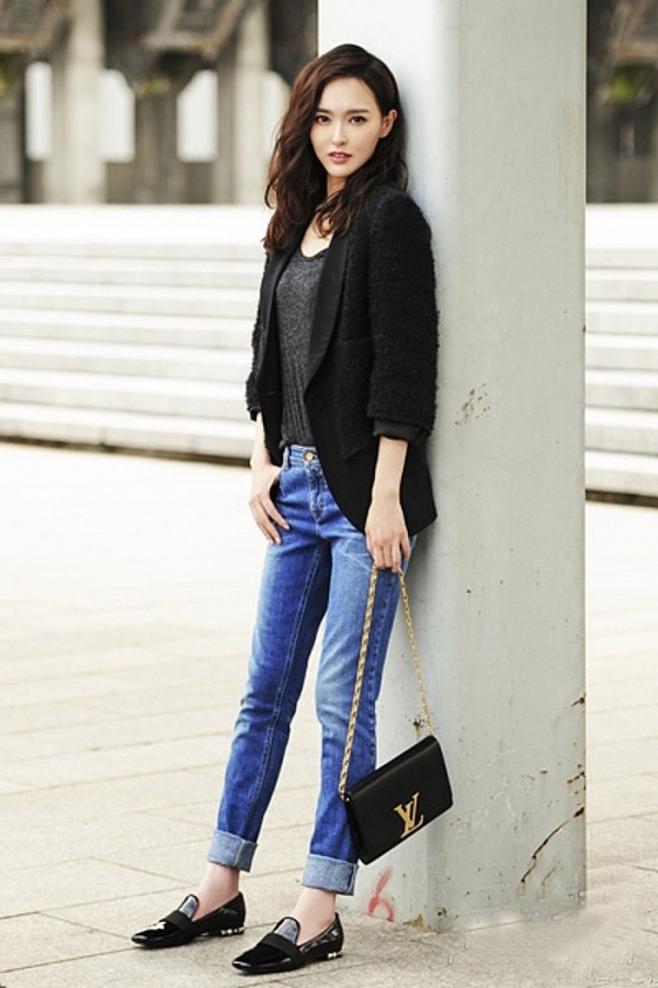 唐嫣玩起中性风格来,也显得柔韧有余,姣好的身材再配上秀气面庞,有着丝毫不逊色男孩子的帅酷感。链条跨包也是近两年火爆的时尚单品,对于爱美的唐嫣来说,并不会错过。