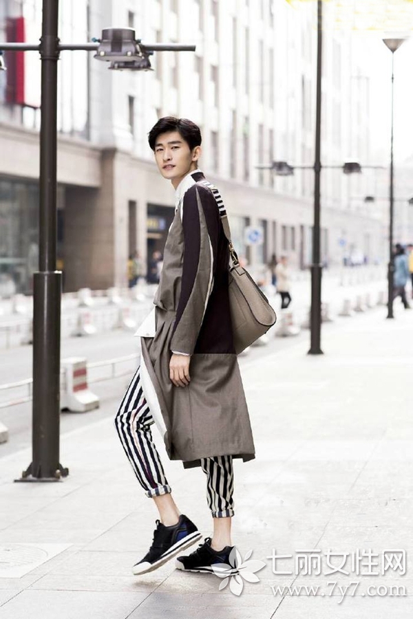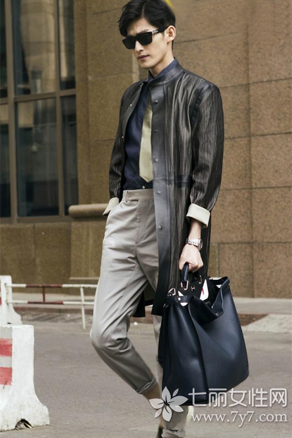 一件长款皮风衣在张翰修长身高的衬托下,显得颇为大气时尚,宝蓝色衬衫与高腰灰色西装裤组成的内搭,把那双大长腿呈现到了极致,一条长裤被生生穿成九分裤。男神必备的真皮提包,张翰也没忘记带出街,整体看上去特有时尚大老板的感觉。