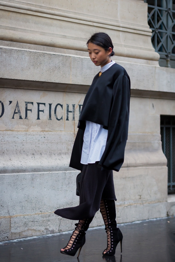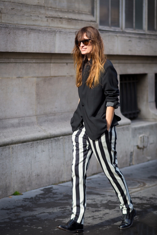 Caroline-de-Maigret的风格一直是简约风,两件大衣叠加在一起,黑白灰是永恒不变的经典,暗色调能走出极佳的文艺范。