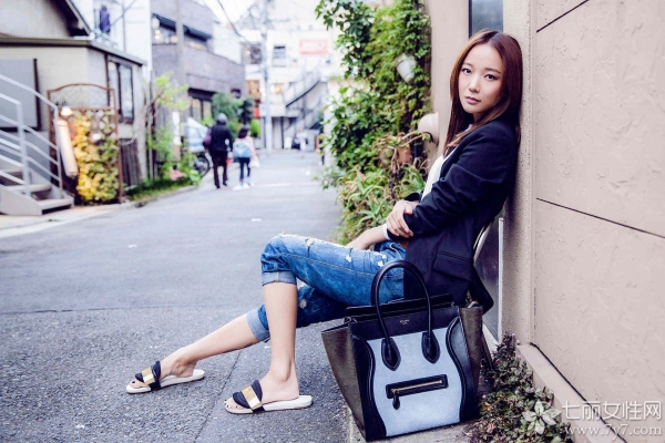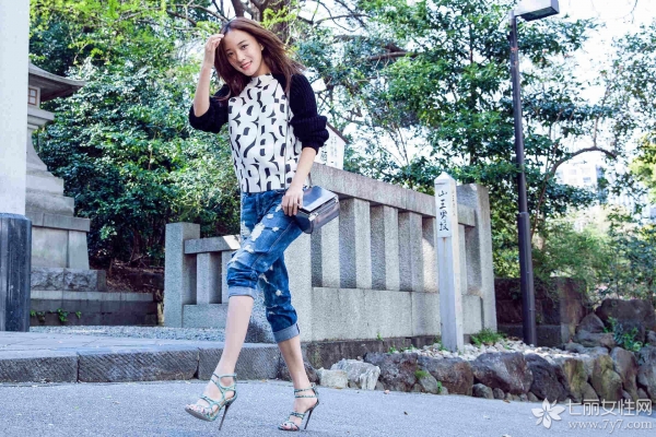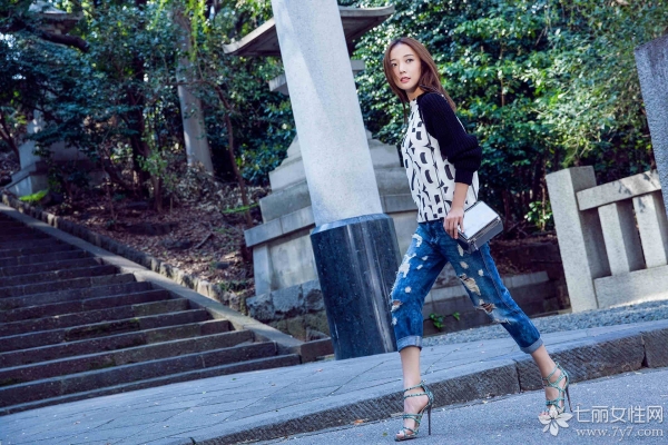 这组街拍图片以城市古老小巷为背景,俨然一片休闲安逸的氛围。王珞丹一件修身小西装搭配牛仔七分裤,休闲随意中流露出清纯气质,那条破洞牛仔裤也在人为卷边后,穿出了青春时尚感。