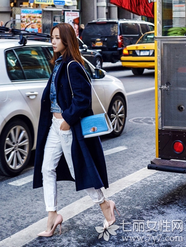 牛仔与风衣的混搭,着实证明了王珞丹的搭配功底,高挑的身材将原本廓形不对称的个性单品,穿出了美丽的味道。