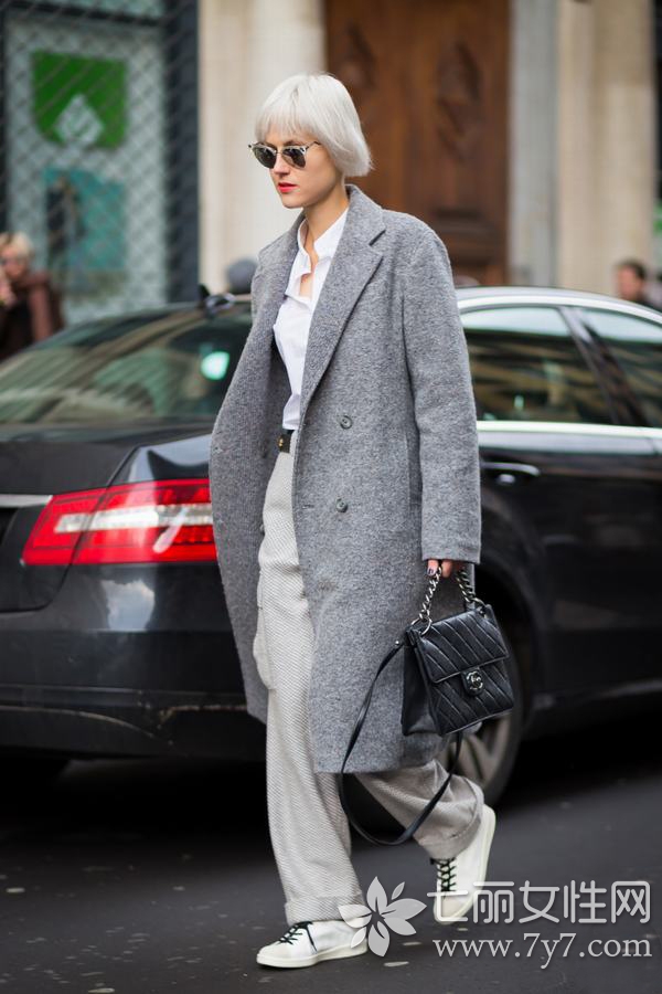 小编点评:用大衣的大廓形优势来打造简约搭配,也正符合推崇简约生活方式。图中的高冷灰色大衣搭配上休闲阔腿裤,就是活力又有范到百试不爽的组合。