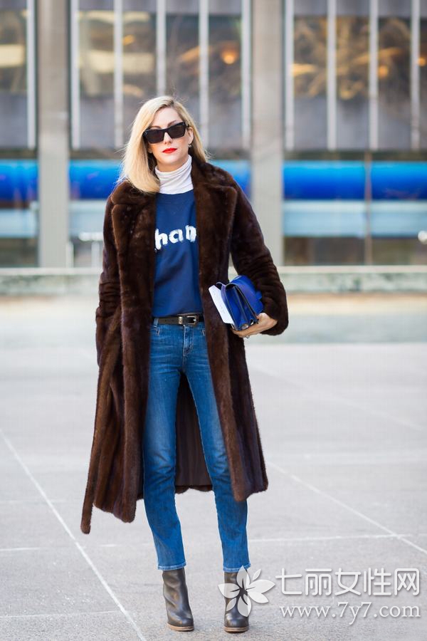 小编点评:长款的貂绒外套,面料奢华大气,穿上也很显格调品味。图中的达人将貂绒外套搭配上休闲中性风的内搭,玩转别样的个性风格,这种独特气质也会是你吸睛的亮点。