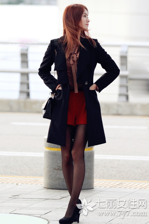 韩国的穿衣风格,以大廓形和长款最为特点,舒适剪裁的版型大气又贴合身材。看允儿身穿的黑色风衣与短裤组成的层次搭配就特有韩范!
