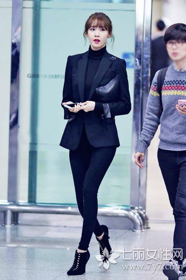 允儿一身黑色组合,显得十分气质精神,颇有时尚女老板的风范,而原本就高挑的身材,显得格外惹眼。