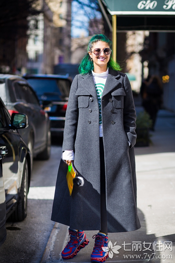 当然除了深色系其实灰色也适合一些饱和度相对较高的颜色,比如绿色、蓝色、红色这类明艳的颜色的。适当的添加色彩能够为你的搭配加上可观的分数。