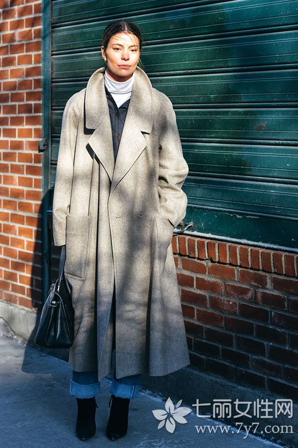 灰色大衣街拍图片