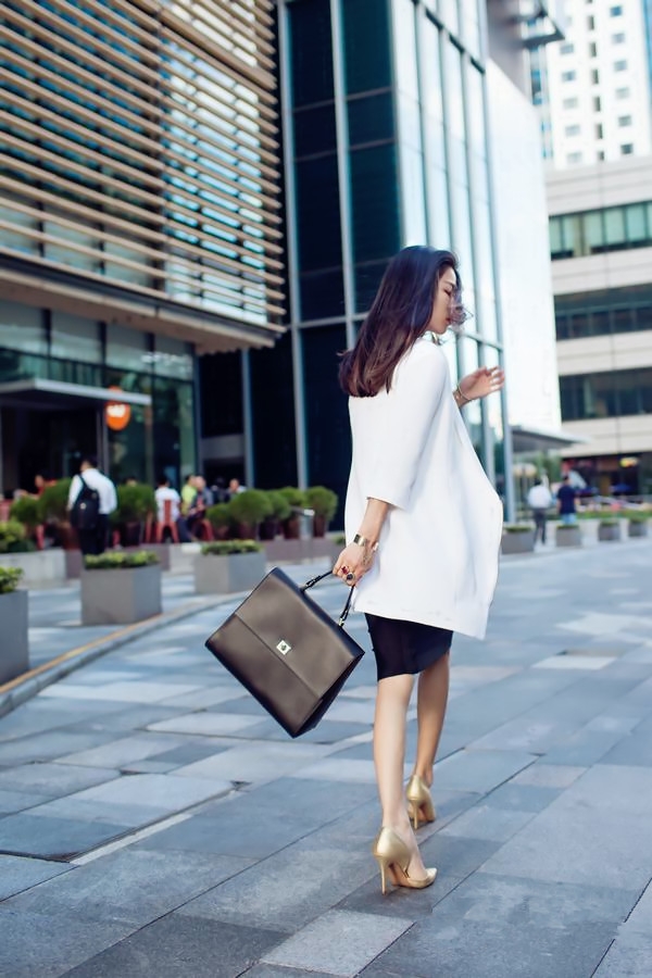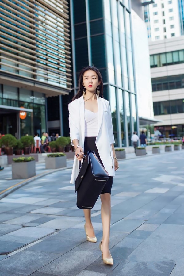 职场lady可以选择简约色系的小西装、V领打底内搭和高腰包臀裙,干练又不失优雅气质。随着寒流残暴来袭,外披一件长款廓形大衣更加有范。