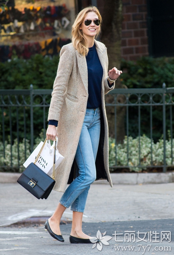 卡莉劳伦斯冬季最喜爱的穿搭之一就是风衣造型了,天生好身材和独特的气质,将每款风衣造型都诠释得颇为大气和出众。图中的她身穿一件浅灰色大衣搭配浅蓝色牛仔裤,显得清爽休闲,精致的链条包包,与大衣呼应来突出整体的高级感,整体看上去十分魅力。