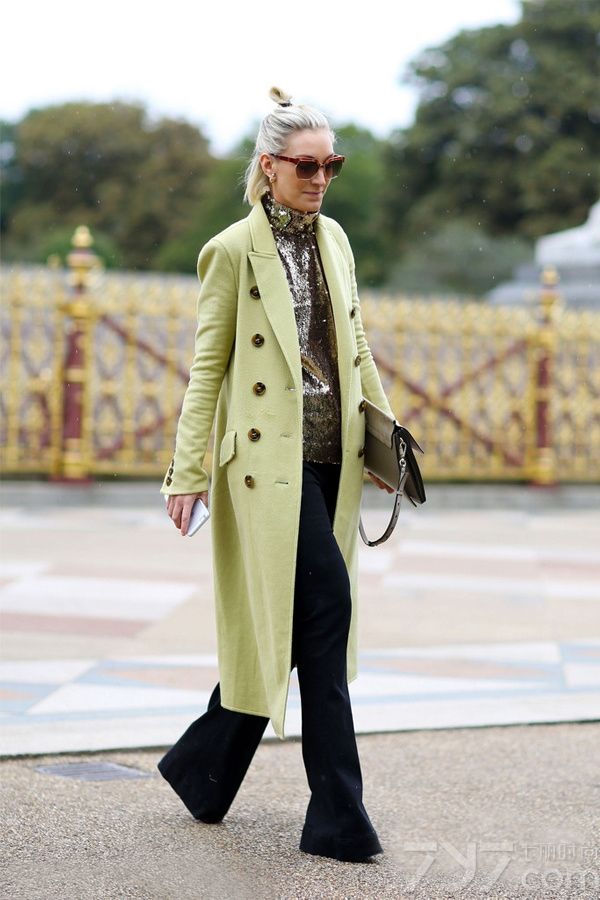 长款大衣搭配上喇叭裤的LOOK,将现代剪裁,与复古元素相结合,正是格调的体现。