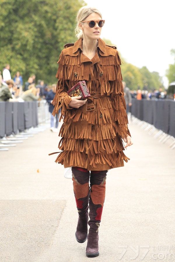 麂皮搭配加入到流苏剪裁的装饰,突显另类格调,搭配麂皮长靴的LOOK,尽显别样风情!