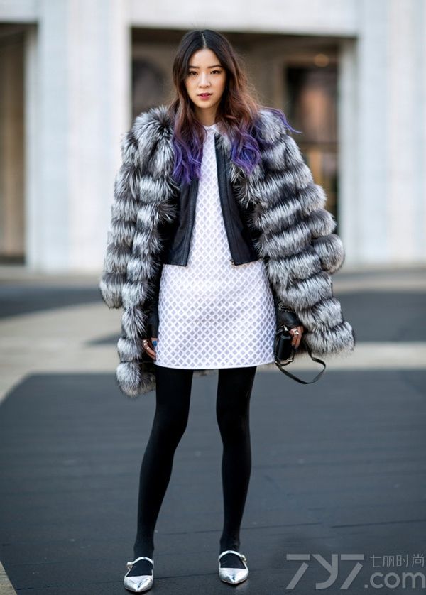 皮草大衣披着穿的好处,当然是不显臃肿,而内搭修饰出身材,让气质不降反升哦!
