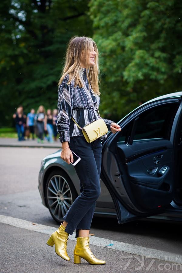 金色的鞋款在今年也是超级流行,而作为鞋子出现也十分好驾驭,有这样逼格的单品,还怕走在人群中不抢眼吗?