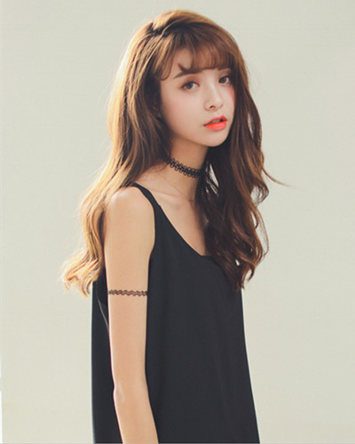 时尚看点:棕色的染发与波浪式的烫卷都让整个长发发型充满了时尚韩范儿,搭配一款烫卷的空气刘海,既甜美可爱万分又凸显出迷人的脸蛋。
