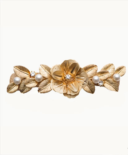 色花儿珍珠发夹 黑色小发夹