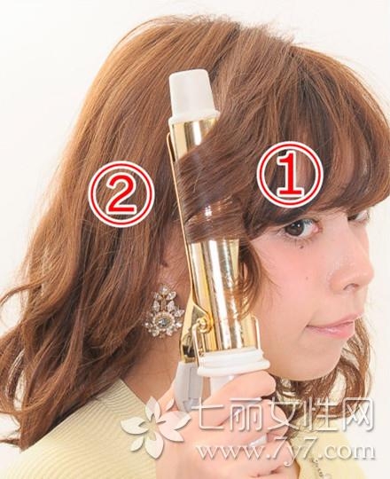 再取出刘海附近的发束并用卷发棒烫卷。