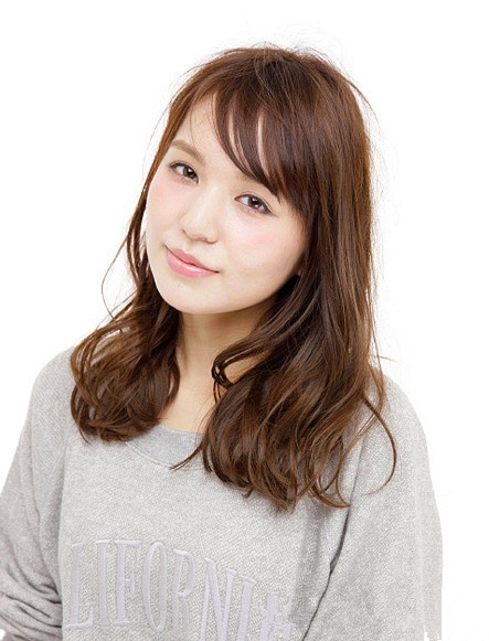 圆脸适合的中长发型LOOK1