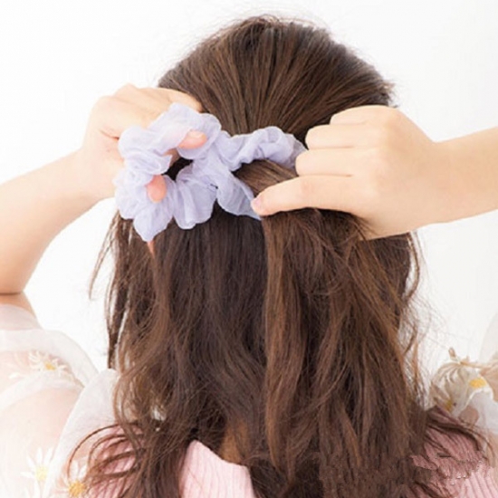 取出上半部分头发绑成马尾后用发饰固定。