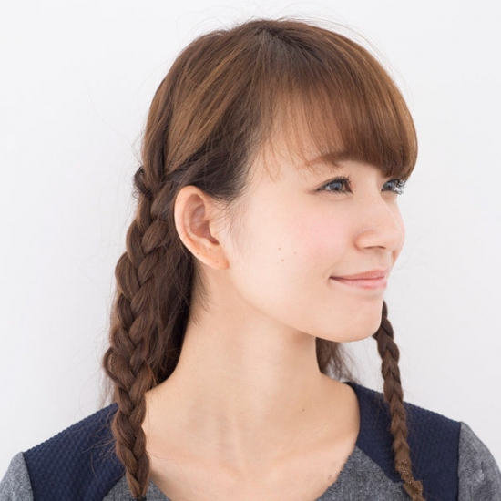 在左右两侧各取出一束头发并编成三股辫。