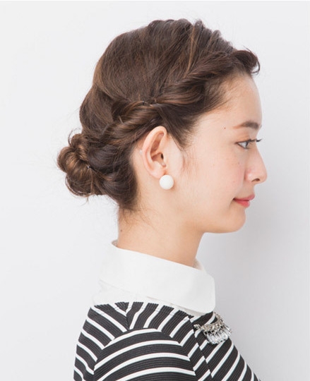 时尚看点:这款齐刘海编发发型给人十足的清新感与设计感,利用前额的刘海扭转成别致的发辫,并露出清爽饱满的额头,洋溢着满满的清爽姿态,同时也完美的展露出女生甜美迷人的小脸蛋哦,整个刘海编发尽显动人气质。