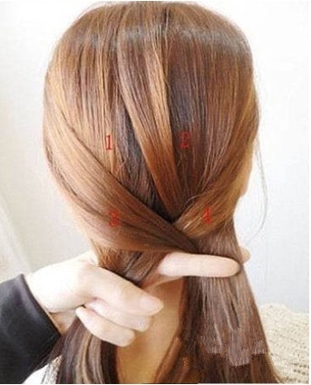 用3和4发束绕过1和2在中间交叉,交叉之后发束和1、2汇合。