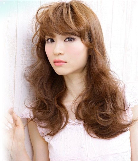 时尚看点:这款韩式中长卷发发型看起来非常的饱满大气,采用大波浪烫发效果十分的抢镜,搭配丰盈的刘海蓬松华丽,遮盖额头凸显出动人双眸。